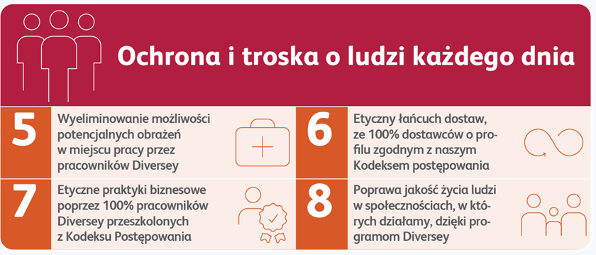 W przyszłości zrównoważony rozwój pozostanie integralną częścią naszej działalności, działań naszych pracowników i innowacji, które wprowadzimy na rynek. Wyzwania środowiskowe, przed którymi stoi dzisiejszy świat, muszą zostać podjęte przez wiodące korporacje, które chcą przekształcić swoje branże dzięki wydajności, technologii i zrównoważonym praktykom. Diversey będzie kontynuować podróż w kierunku zrównoważonego rozwoju, mając na celu poprawę społeczną, środowiskową i gospodarczą.