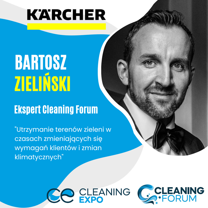Bartosz Zieliński z firmy Kärcher podzieli się swoim doświadczeniem na konferencji Cleaning Forum i jako ekspert weźmie udział w panelu "Utrzymanie terenów zieleni w czasach zmieniających się wymagań klientów i zmian klimatycznych" (25.10.2023, godz. 13:30 - 15:00).