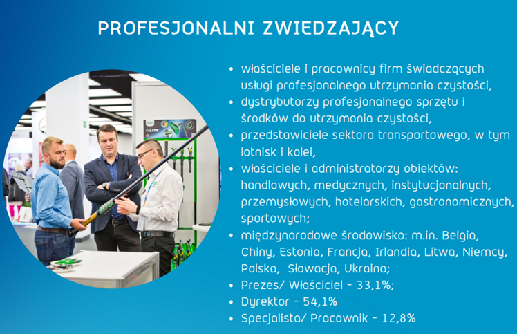 Branża utrzymania czystości stała się bardzo ważnym filarem współczesnych, bezpiecznych realiów. Pomimo niespokojnych czasów, polski przemysł profesjonalnego utrzymania czystości wciąż się rozwija. Targi Cleaning Expo to platforma wymiany idei, pomysłów i produktów dla wszystkich przedstawicieli tej branży. Eksperci, przedsiębiorcy i producenci mają okazję spotkać się i rozpocząć dyskusję na temat branżowych trendów, najnowszych produktów, innowacyjnych technologii i przyszłości przemysłu profesjonalnego utrzymania czystości.