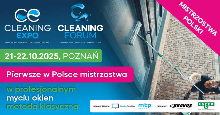 Grupa MTP oraz firma Cleaning Consulting z radością ogłaszają I Mistrzostwa w Profesjonalnym Myciu Okien metodą klasyczną, które odbędą się 22 października 2025 r. podczas targów profesjonalnego utrzymania czystości Cleaning Expo w Poznaniu.