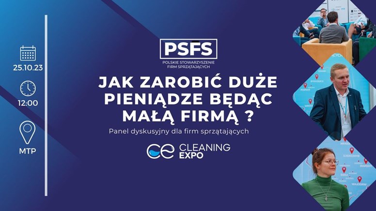 W ramach Targów Cleaning Expo 2023 Polskie Stowarzyszenie Firm Sprzątających organizuje panel dyskusyjny poświęcony działalności małych i średnich firm z branży utrzymania czystości. Panel odbędzie się 25 października 2023 na terenie MTP - Międzynarodowe Targi Poznańskie. Złożą się na niego prezentacje zaproszonych gości i dyskusja uczestników z udziałem publiczności.