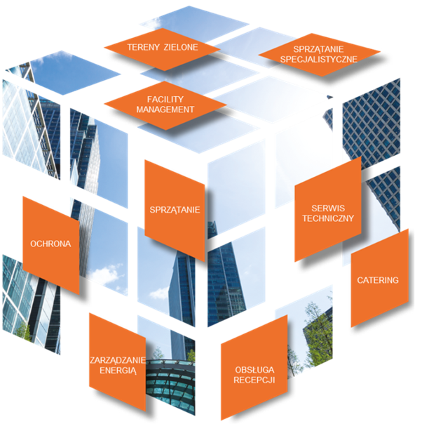 Obszary działalności: Facilities Management, Utrzymanie czystości, Serwis techniczny, Ochrona, Catering, Obsługa recepcji, Zarządzanie energią