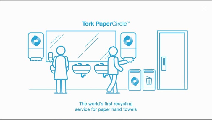 - Tork PaperCircle - to jedyna w swoim rodzaju usługa recyklingu papierowych ręczników do rąk. Marka Tork pomaga firmom klientów przyjąć model obiegowy, poprzez odbiór oraz recykling zużytych papierowych ręczników do rąk, i przekształceniu odpadów w surowiec, który zostaje wykorzystany do tworzenia nowych produktów papierowych. Tork PaperCircle umożliwia firmom klinetów osiągnięcie celów w zakresie zrównoważonego rozwoju, poprzez ograniczenie ilości odpadów nawet o 20%1 i redukcję emisji dwutlenku węgla z papierowych ręczników do rąk nawet o 40%2. Stanowi to jasny wyraz zobowiązania przedsiębiorstw do przestrzegania zasad zrównoważonego rozwoju – zarówno w przypadku gości, jak i pracowników.