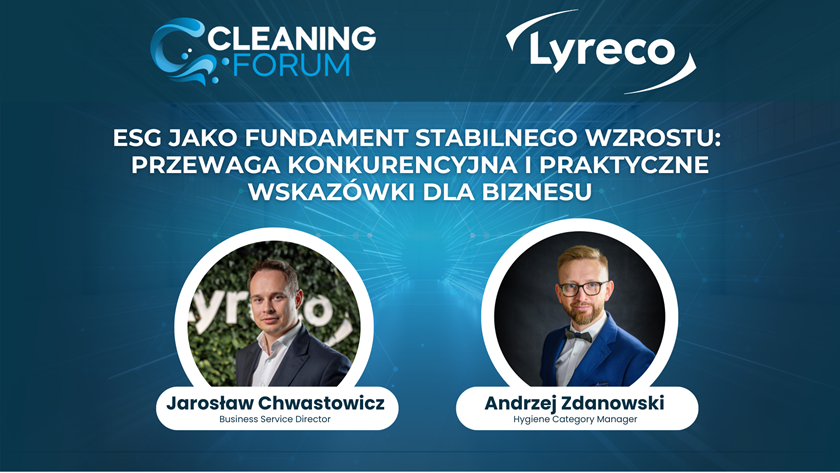 Podczas tegorocznych targów Cleaning Expo 2024 w pierwszym dniu uczestnicy będą mieli okazję wysłuchać prelekcji strategicznego partnera Cleaning Forum – firmy Lyreco. Prezentację poprowadzą doświadczeni eksperci Jarosław Chwastowicz oraz Andrzej Zdanowski, którzy podzielą się praktycznymi wskazówkami dotyczącymi wdrożenia zasad ESG.