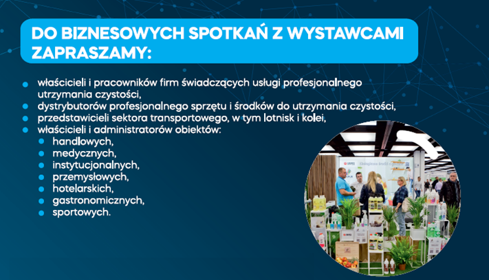 - ekspozycja nowoczesnych maszyn i urządzeń do czyszczenia oraz innowacyjnych środków czystości;